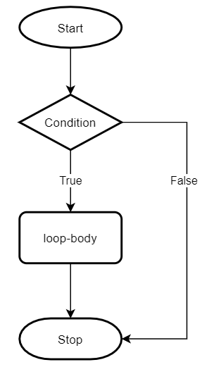 while 문은 각 반복 시작 시 조건을 확인합니다. 조건이 True인 동안 본문을 실행합니다.